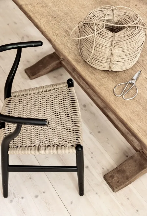 Vores foretrukne materiale er papirgarn i naturfarve, som giver et klassisk og tidløst udtryk. Vi fletter i flere mønstre – bl.a. kuvert-flet, tern og dobbelt-felt – og tager også gerne imod særlige ønsker. Flere af de ikoniske designstole har deres helt eget mønster og vores medarbejdere kender dem til fingerspidserne, men vi er altid åbne for at prøve noget nyt. Ønsker du et mere moderne udtryk, kan vi også flette med sort indfarvet papirgarn.