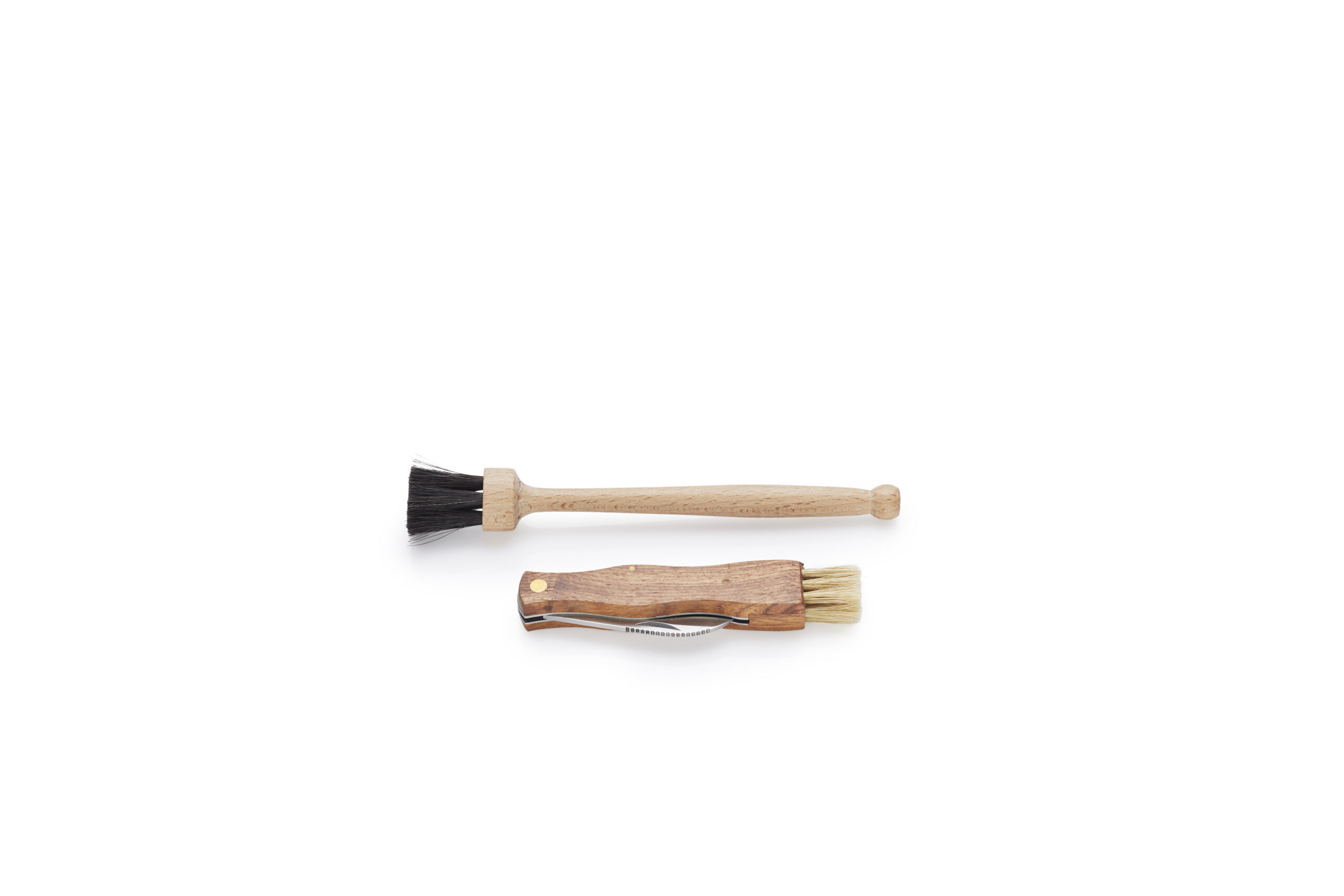 Sættet består af en mindre børste, samt en svampekniv. Kniven er i en fin bue og god til at skære roden fra.