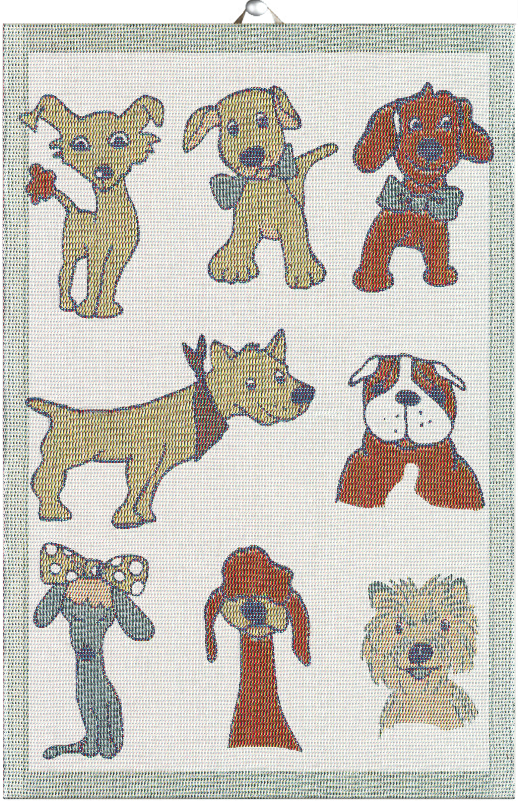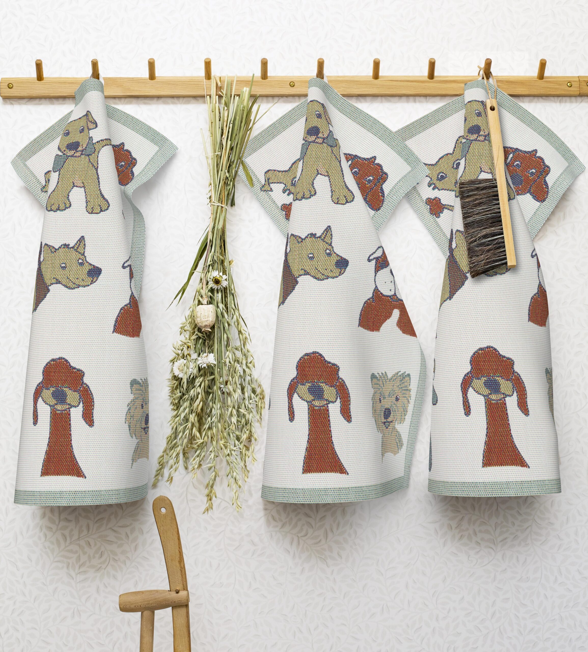 Sødt viskestykke med hunde til alle hundeelskere fra Ekelund i 100% økologisk bomuld